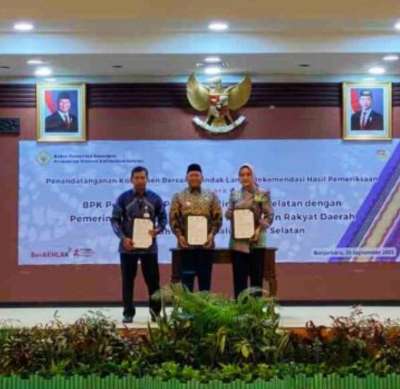 Hal ini dibuktikan melalui penandatanganan komitmen bersama Tindak Lanjut Rekomendasi Hasil Pemeriksaan (TLRHP) Badan Pemeriksa Keuangan (BPK) bersama DPRD Kabupaten Barito Kuala, di Aula Kantor BPK Perwakilan Provinsi Kalimantan Selatan, Kamis (25/9/2025).