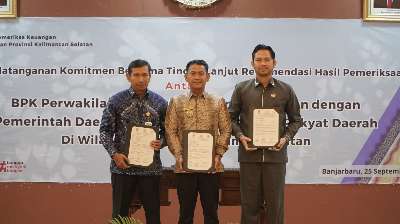 BANJARMASIN, Kalselpos.com – Upaya memperkuat tata kelola keuangan daerah kembali ditekankan melalui penandatanganan komitmen bersama tindak lanjut rekomendasi hasil pemeriksaan (TLRHP) Badan Pemeriksa Keuangan (BPK) RI Perwakilan Kalimantan Selatan.