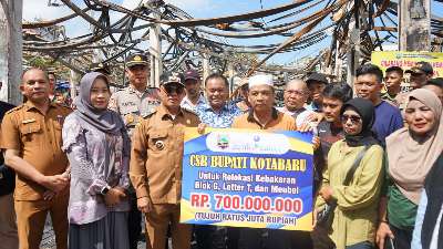 “Bupati Kotabaru dengan inisiatif sendiri beliau berkunjung kelokasi kebakaran, sekaligus memberikan bantuan biaya relokasi yang diambil dari dana CSR Bank Kalsel,” jelasnya.