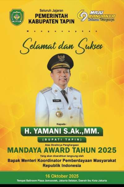 Bupati Tapin H Yamani menyebut, penghargaan tersebut bukan sekadar simbol prestasi, melainkan pengakuan atas kerja nyata pemerintah daerah dalam membangun kesejahteraan rakyat.