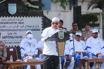 Kontingen Kabupaten Banjar resmi dilepas Wakil Bupati Habib Idrus Al Habsyi di halaman Kantor Bupati Banjar, Senin (21/10/2025) pagi. Kegiatan ini turut dihadiri Ketua KONI Kabupaten Banjar HM Rofiqi, jajaran pengurus KONI serta sejumlah kepala SKPD terkait.