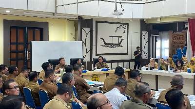 Pertemuan itu dipimpin langsung oleh Wali Kota Banjarmasin H. Muhammad Yamin HR, didampingi Sekretaris Daerah (Sekda) Ikhsan Budiman dan Asisten II Setdako, Taufik Rivani, dihadiri seluruh Kepala SKPD, Bagian, Camat dan Perusda di lingkungan pemerintah kota Banjarmasin.