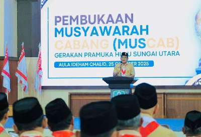 Muscab itu dibuka langsung Bupati HSU H Sahrujani selaku Ketua Majelis Pembimbing Cabang Gerakan Pramuka HSU.