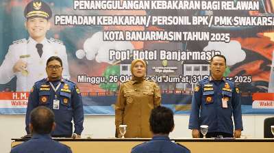 BANJARMASIN, Kalselpos.com – Upaya meningkatkan kemampuan dan profesionalisme personel, Dinas Pemadam Kebakaran dan Penyelamatan (Disdamkarmat) Kota Banjarmasin menggelar kegiatan Diklat Teknis Penanggulangan Kebakaran bagi puluhan personel PMK/BPK Swakarsa yang terdiri dari seluruh perwakilan kelompok masyarakat dan relawan di lima kecamatan, dijadwalkan berlangsung selama 6 hari 5 malam, mulai tanggal 26 hingga 31 Oktober 2025. Kegiatan itu dibuka oleh Wakil Wali Kota Banjarmasin, Hj. Ananda terpusat di Hotel Pop Banjarmasin, Senin (27/10).