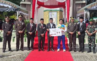 “Kita berbeda dengan era masa lalu. Dulu pemuda mengangkat bambu runcing, sekarang kita mengangkat ilmu dan kejujuran untuk mengisi pembangun untuk kesejahteraan masyarakat,” ujar Bupati Syafrudin Noor.