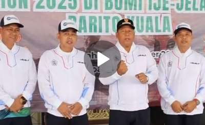 Sebelum rombongan kirab obor melanjutkan perjalanan, Bupati Bahrul Ilmi juga menyampaikan pesan motivasi kepada para atlet Batola.