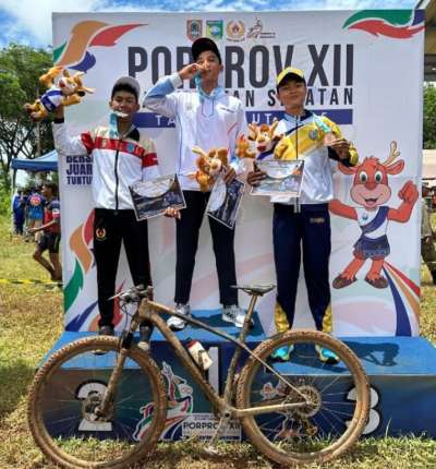 Tambahan 3 emas yang raih Batola, Rabu (29/10), satu di antaranya dipersembahkan dari balap sepeda MTB XCO atas nama Ahmad Musari Rasid di nomor 30 kilometer.