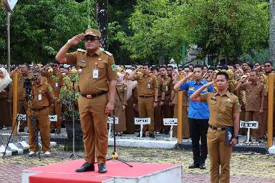 Apel itu dipimpin Bupati HSU H Sahrujani di Halaman Kantor Bupati HSU, Selasa (28/10/2025).