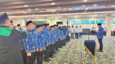 Kotabaru, kalselpos.com – Pemerintah Kabupaten Kotabaru melalui Sekretaris Daerah H. Eka Saprudin, AP., M.AP melantik dan mengambil sumpah janji kepada 180 orang Pejabat Fungsional yang bertempat di Aula Bamega Kantor Bupati Sebelimbingan, Rabu (5/11/2025) siang.