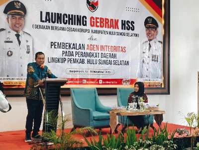 Inspektur Daerah Kabupaten HSS Kiki Rachmawati, mengatakan lounching GEBRAK HSS didukung tiga pilar utama, yang dirancang sebagai arsitektur strategis untuk menanggulangi risiko korupsi dan meningkatkan kualitas integritas, pembentukan agen integritas, optimalisasi pengawasan internal dan pembangunan sistem aplikasi pengaduan (SAPA) HSS.