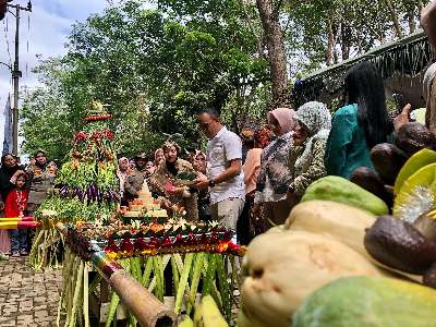 Masyarakat Desa Sebelimbingan terlihat berbondong-bondong membawa hasil panen terbaik mereka, mulai dari aneka sayuran segar, singkong, kacang-kacangan, hingga buah-buahan lokal. Semua dikumpulkan dalam tumpeng hasil bumi raksasa, wujud nyata rasa syukur.