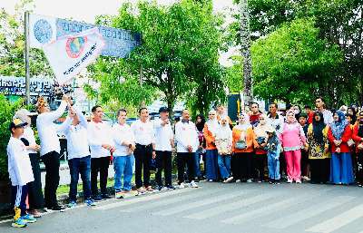 Peserta jalan sehat ini secara resmi dilepas Wakil Bupati Bupati Kabupaten HSU Hero Setiawan, Ahad (30/11/2025).