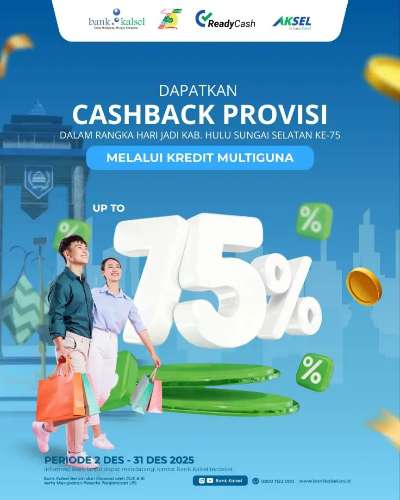 “Momentum hari jadi ke-75 Kabupaten HSS adalah waktu yang tepat bagi Bank Kalsel untuk memberikan manfaat yang lebih besar kepada masyarakat. Cashback Kredit Multiguna hingga 75% ini merupakan bentuk apresiasi kami kepada masyarakat yang telah mempercayai Bank Kalsel sebagai mitra layanan keuangan mereka,” ujar Fachrudin.