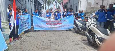 Kotabaru, Kalselpos.com – Puluhan buruh yang tergabung dalam Tenaga Kerja Bongkar Muat (TKBM) Primer Koperasi Karya Bahari Kotabaru menggelar aksi solidaritas di depan Kantor Kesyahbandaran dan Otoritas Pelabuhan Kelas II Kantor Kotabaru-Batulicin Pos Wilayah Kerja Kotabaru, Senin (08/12/2025) siang. Aksi damai ini berlangsung tertib dan damai hingga selesai.