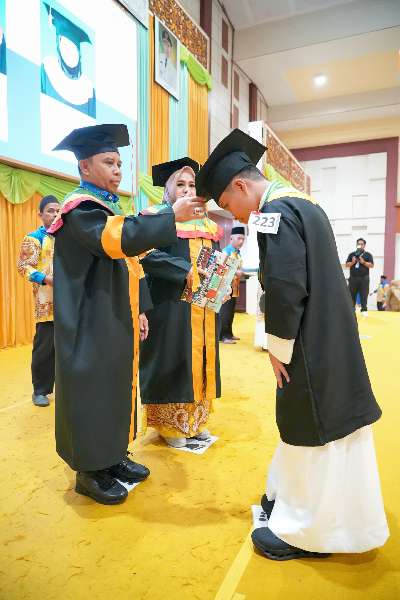 Prosesi wisuda dipimpin langsung Bupati Tapin H Yamani bersama Ketua TP PKK Tapin Hj Faridah Yamani, Wakil Bupati Tapin H Juanda, dan Ketua DPRD Tapin Achmad Riduan Syah. Pemindahan tali toga dan penyerahan sertifikat menandai selesainya pendidikan dasar Al-Qur’an para santri.