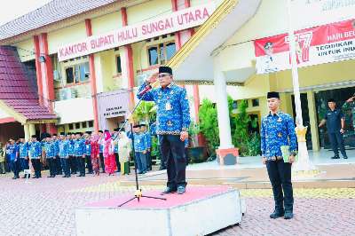 Apel diikuti para Kepala SKPD dan jajaran dilingkungan Pemkab HSU, Forkopimda, TNI, Polri serta tamu undangan lainnya.