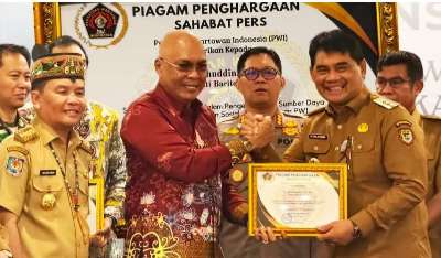 Palangka Raya, kalselpos.com – Persatuan Wartawan Indonesia (PWI) Provinsi Kalimantan Tengah (Kalteng) memberikan penghargaan spesial kepada Bupati Barito Utara (Barut), H. Shalahuddin. Penghargaan “Sahabat Pers” ini diserahkan langsung oleh Ketua PWI Pusat, Akhmad Munir, dalam agenda Konferensi Kerja Daerah (Konferda) PWI Kalteng di Hotel Alltrue, Palangka Raya, Senin (29/12/2025).