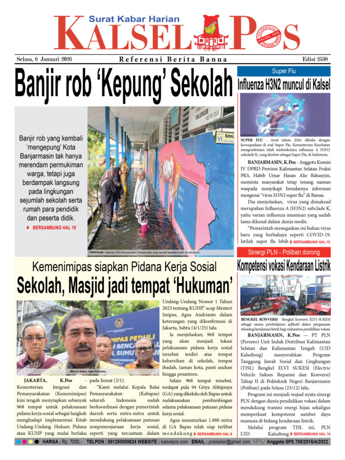 Banjir rob ‘Kepung’ Sekolah Zainal6 Januari 2026277 views Banjir rob ‘Kepung’ Sekolah Kemenimipas siapkan Pidana Kerja Sosial, Sekolah, Masjid jadi tempat ‘Hukuman’ Influenza H3N2 muncul di Kalsel Sinergi PLN – Poliban dorong, Kompetensi vokasi Kendaraan Listrik Download Epaper PDF Disini Bacaan LainnyaDugaan Tipikor di PT Bangun Banua, Kuasa Pemegang Saham akan ‘Diperiksa’Diduga akibat Balap liar, Dua orang Remaja meninggalKUHP baru Lebih Untungkan Terdakwa, PN Barabai terapkan di Kasus Penganiayaan Download Epaper PDF Disini Kalsel Pos Berita Terkini, Kabar Terbaru Hari ini Banjarmasin Kalimantan Selatan dan Nasional Pos terkaitDugaan Tipikor di PT Bangun Banua, Kuasa Pemegang Saham akan ‘Diperiksa’Diduga akibat Balap liar, Dua orang Remaja meninggalKUHP baru Lebih Untungkan Terdakwa, PN Barabai terapkan di Kasus Penganiayaan