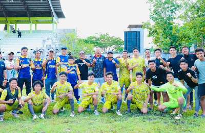 Walaupun mengalami kekalahan, Bupati H Sahrujani terus memberikan semangat kepada tim kesebelasan Perseam Amuntai agar terus berjuang.