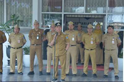 “Mari tingkatkan displin dan kerjasama persatuan dan kesatuan kita, bekerja dengan nyaman demi memberikan pelayanan dna pengabdian kepada Bangsa, negara dan masyarakat,” ajak Wabup Suriani.