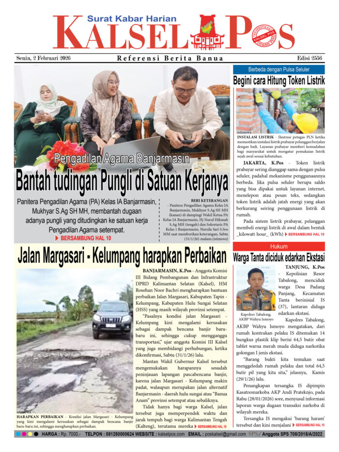 Pengadilan Agama Banjarmasin, Bantah tudingan Pungli di Satuan Kerjanya Zainal2 Februari 2026478 views Pengadilan Agama Banjarmasin, Bantah tudingan Pungli di Satuan Kerjanya Jalan Margasari – Kelumpang harapkan Perbaikan Berbeda dengan Pulsa Seluler, Begini cara Hitung Token Listrik Warga Tanta diciduk edarkan Ekstasi Download Epaper PDF Disini Bacaan LainnyaKetersediaan BBM harus Aman, Jangan sampai Ada ‘Panic Buying’Sidang pembunuhan Mahasiswi ULM, Pecatan Polisi didakwa Pasal BerlapisTimnas ‘menyerah’ 0-1 atas Bulgaria Download Epaper PDF Disini Kalsel Pos Berita Terkini, Kabar Terbaru Hari ini Banjarmasin Kalimantan Selatan dan Nasional Pos terkaitKetersediaan BBM harus Aman, Jangan sampai Ada ‘Panic Buying’Sidang pembunuhan Mahasiswi ULM, Pecatan Polisi didakwa Pasal BerlapisTimnas ‘menyerah’ 0-1 atas Bulgaria