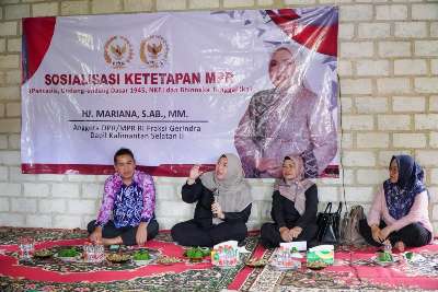 Pelaihari, kalselpos.com — Anggota DPR RI Fraksi Partai Gerindra, Hj Mariana Abidin, S.AB., MM, melaksanakan Sosialisasi Ketetapan MPR RI tentang Pancasila, Undang-Undang Dasar 1945, Negara Kesatuan Republik Indonesia (NKRI), dan Bhinneka Tunggal Ika di Desa Tirta Jaya, Kabupaten Tanah Laut, pada Kamis, 5 Februari 2026.