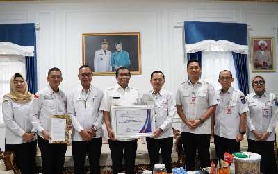 Ombudsman RI menyerahkan piagam penghargaan penilaian maladministrasi pelayanan publik tahun 2025, kepada Dinas Sosial Kabupaten HSS atas predikat kualitas pelayanan sangat baik, yang diserahkan kepada Bupati HSS.