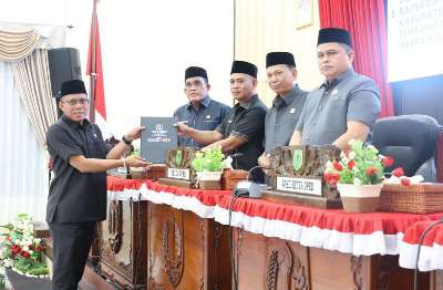 Rapat paripurna ini dipimpin Ketua DPRD HSU H Fadilah, didampingi Wakil Ketua I dan II, Mawardi dan H Ahmad Algifari, serta dihadiri anggota DPRD HSU.