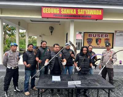 Kanit Reskrim Polsek Banjarmasin Selatan, AKP Joko Sulistyo Sriyono, menjelaskan bahwa setelah dilakukan pemeriksaan dan penggeledahan, petugas menemukan sejumlah senjata tajam yang dibawa beberapa remaja.