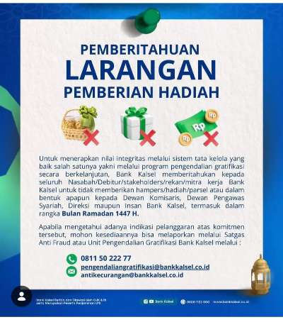 Pihak Bank Kalsel memohon maaf atas ketidaknyamanan ini dan mengapresiasi pengertian seluruh nasabah. Untuk informasi lebih lanjut, nasabah dapat menghubungi Call Center Bank Kalsel di nomor 0800 1122 000.