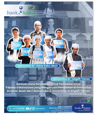 Sebagai bagian dari komitmen sosial, UPZ Bank Kalsel senantiasa mengajak para donatur dan Sahabat Bank Kalsel untuk menyalurkan zakat, infak, dan sedekah (ZIS) melalui rekening resmi Bank Kalsel guna mendukung program-program keberlanjutan pendidikan dan sosial lainnya.