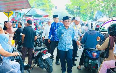 Amuntai, kalselpos.com – Bupati Kabupaten Hulu Sungai Utara (HSU) H Sahrujani didampingi Wakil Bupati HSU Hero Setiawan, baru-baru ini meninjau aktivitas pasar Ramadan di Jalan Empu Jatmika, Kelurahan Sungai Malang, Kecamatan Amuntai Tengah.
