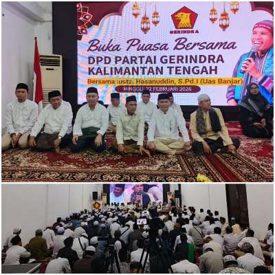 Palangka Raya, kalselpos.com – Dewan Pimpinan Daerah (DPD) Partai Gerindra Kalimantan Tengah (Kalteng) menggelar acara buka puasa bersama di Kantor DPD Gerindra, Jalan Seth Adji, Palangka Raya, Minggu (22/2/2026) sore.