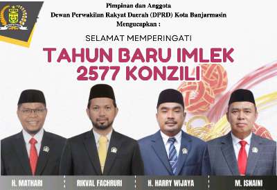 Pimpinan dan Anggota DPRD Kota Banjarmasin mengucapkan: Selamat memperingati Tahun Baru Imlek 2577 Konzili winda kalselpos27 Februari 2026206 views Pimpinan dan Anggota DPRD Kota Banjarmasin mengucapkan: Selamat memperingati Tahun Baru Imlek 2577 Konzili Pos terkaitBupati HSS Buka Puasa Bersama BPK dan Relawan BencanaSafari Ramadan, Wabup Suriani salurkan Bansos LKSABupati Kotabaru serahkan 172 Paket Sembako kepada Petugas Lapangan DLH