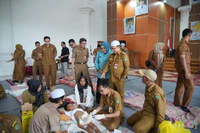 Pelayanan ditangani 32 tenaga kesehatan, terdiri atas dokter dan petugas dari sejumlah puskesmas dan tenaga apoteker. Dari 150 peserta yang mendaftar, namun yang mengikuti hanya 125 anak, tetapi kalau masih ada yang mau mengikuti tetap kita layani.