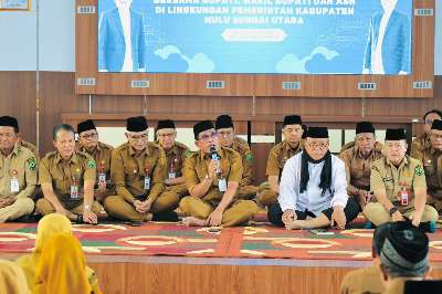 Bupati HSU H Sahrujani menyampaikan terima kasih kepada seluruh jajaran ASN yang telah berhadir dan mengikuti Kajian Ramadan sebagai pengganti apel gabungan.