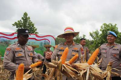 Panen jagung tersebut dipimpin Kapolres Tapin AKBP Weldi Rozika bersama jajaran Polres Tapin dan perwakilan perusahaan mitra.