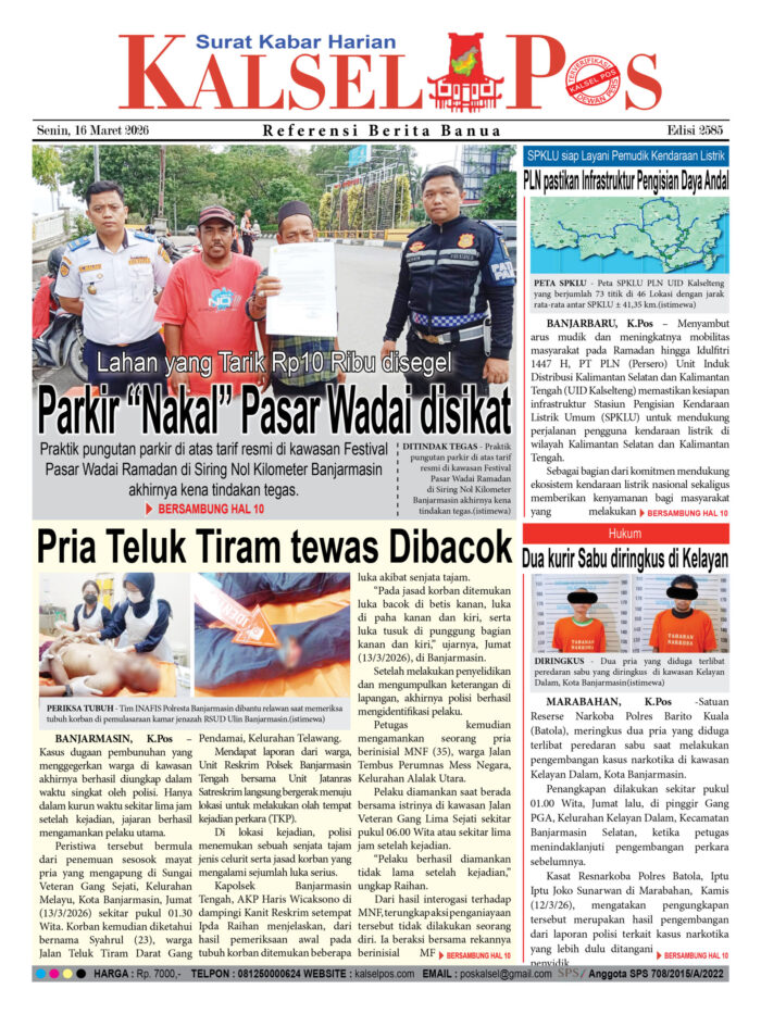 Parkir “Nakal” Pasar Wadai disikat, Lahan yang Tarik Rp10 Ribu disegel Zainal16 Maret 202618 Maret 202664 views Parkir “Nakal” Pasar Wadai disikat, Lahan yang Tarik Rp10 Ribu disegel Pria Teluk Tiram tewas Dibacok SPKLU siap Layani Pemudik Kendaraan Listrik, PLN pastikan Infrastruktur Pengisian Daya Andal Dua kurir Sabu diringkus di Kelayan Download Epaper PDF Disini Bacaan LainnyaBuruh dikeroyok Hingga Tewas, Tersangka Pelaku Serahkan DiriTiga sopir Positif narkoba, Terjaring razia tes Urine BNNK BalanganTerkait Korupsi Dana Desa Rp657 juta, Eks Kades di Kusan Hilir divonis 3 Tahun Download Epaper PDF Disini Kalsel Pos Berita Terkini, Kabar Terbaru Hari ini Banjarmasin Kalimantan Selatan dan Nasional Pos terkaitBuruh dikeroyok Hingga Tewas, Tersangka Pelaku Serahkan DiriTiga sopir Positif narkoba, Terjaring razia tes Urine BNNK BalanganTerkait Korupsi Dana Desa Rp657 juta, Eks Kades di Kusan Hilir divonis 3 Tahun