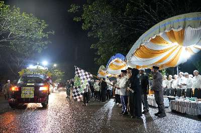 Berbagai kelompok peserta menampilkan miniatur bernuansa Islami, kendaraan hias, serta lantunan takbir yang menggema di sepanjang rute pawai.