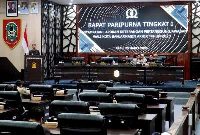 BANJARMASIN, Kalselpos.com – Wali Kota Banjarmasin, HM Yamin HR, menyampaikan Laporan Keterangan Pertanggungjawaban (LKPJ) Tahun Anggaran 2025 dalam Rapat Paripurna DPRD Kota Banjarmasin, Rabu (25/3/2026).