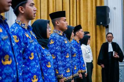 “Dalam sumpah dan janji yang diucapkan, ada tanggung jawab moral dan hukum yang harus dijalankan dengan sungguh-sungguh. Oleh karena itu, dalam bekerja hendaknya kita awali dengan niat yang tulus dan selanjutnya jalankan etos kerja yang positif,” ucapnya.