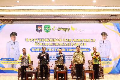 Rakor dan monev ini, lanjutnya, menjadi momentum untuk mengevaluasi sekaligus menyusun langkah strategis penguatan inovasi daerah.