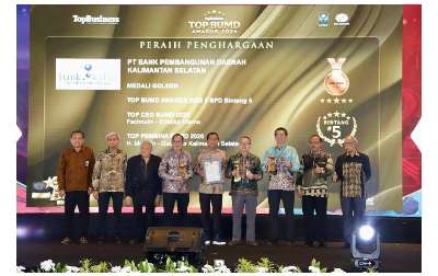 Tak hanya itu, Bank Kalsel juga menyabet kategori TOP BUMD Awards 2026 BPD Bintang 5. Prestasi individu pun turut diraih, di mana Direktur Utama Bank Kalsel, Fachrudin, dinobatkan sebagai TOP CEO BUMD 2026.
