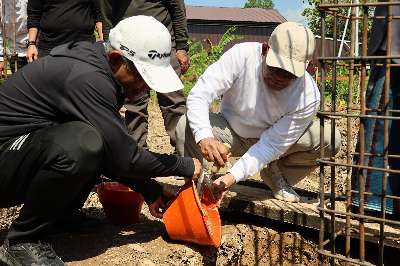 Amuntai, kalselpos.com – Bupati Kabupaten Hulu Sungai Utara (HSU) H Sahrujani dan Wakil Buoati HSU Hero Setiawan meletakkan batu pertama pembangunan langgar Al-Azhar Desa Banyu Tajun Hilir, Kecamatan Sungai Pandan, Sabtu (18/4/2026).