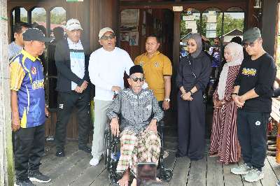 Bantuan itu diserahkan langsung Bupati HSU H Sahrujani didampingi Wakil Bupati Hero Setiawan dan Sekretaris Daerah (Sekda) HSU H Adi Lesmana dikediaman Bapak Misra.