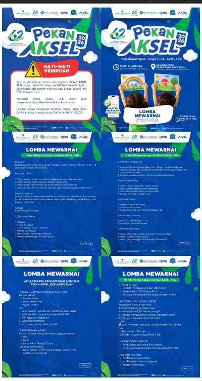 “Jangan lewatkan momen seru untuk belajar, bermain, dan berkreasi bersama di Pekan AKSEL 2026,” tulis Bank Kalsel dalam keterangan resminya.