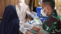 Berikan Pelayanan Vaksinasi Covid-19, Tim Vaksinasi Mobile Kodim 1001 Terobos Banjir
