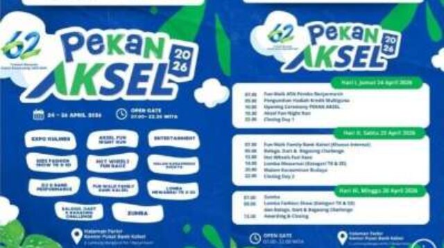 Banjarmasin, kalselpos.com - Bank Kalsel kembali menggelar ajang kreatif dan hiburan bertajuk "Pekan AKSEL 2026". Acara kalselpos.com : Berita Terkini, Kabar Terbaru Hari Ini Banjarmasin Kalsel Kalimantan Nasional dan Dunia