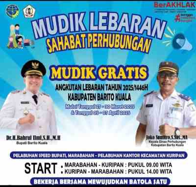 Marabahan, kalselpos.com – Bupati Barito Kuala H. Bahrul Ilmi melalui laman Facebooknya mengumumkan Mudik Gratis kalselpos.com : Berita Terkini, Kabar Terbaru Hari Ini Banjarmasin Kalsel Kalimantan Nasional dan Dunia